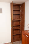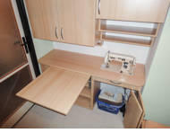 atypický nábytek na míru - stůl na šicí stroj, skříňové schody, nástěnná krycí dvířka, knihovna